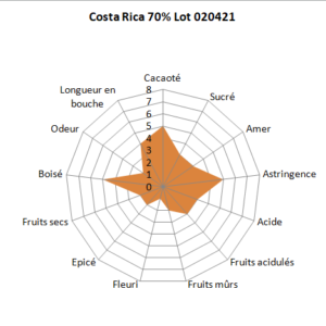 Ce cacao, cultivé dans les montagnes du nord, commence en douceur avec des arômes de miel et de biscuits puis présente des notes de fruits secs et boisées .