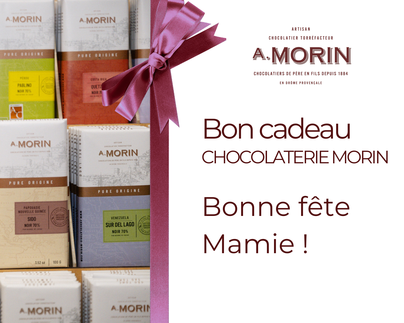 Célébrez la Fête des Grands-Mères avec une attention pleine de douceur grâce au Bon Cadeau de la Chocolaterie Morin.