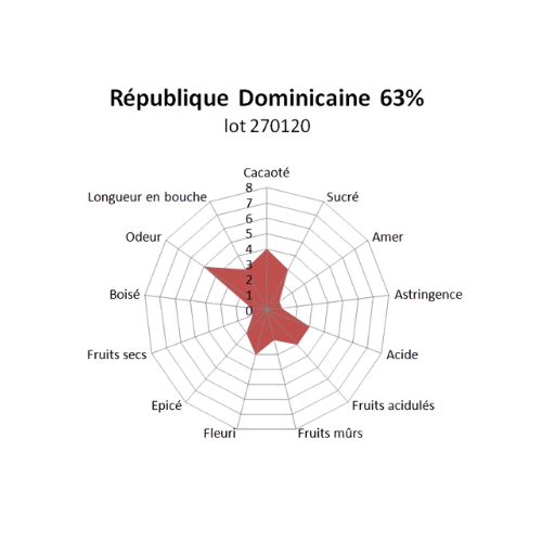 Ce cacao cultivé dans le Nord-ouest du pays donne un chocolat aux arômes de framboises et de groseilles avec des touc...